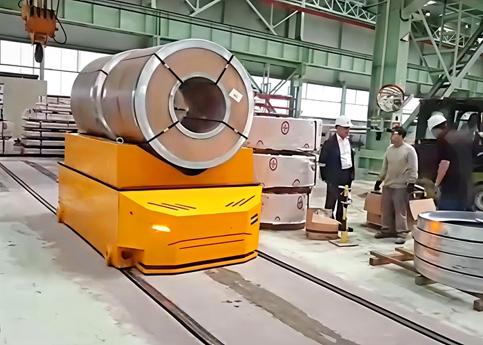 精准停靠:依托轨道导向,可轻松、准确地停靠于开卷机、货架或指定垛位前,实现快速装卸。