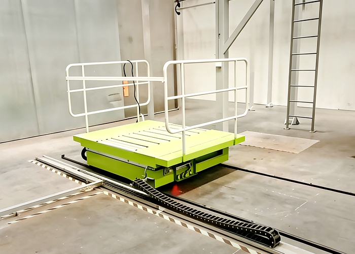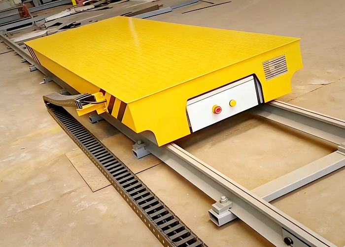 电缆线的位置可根据平车的使用现场的具体情况确定,可放置在地面,也可架设在空中。平车的操作系统由低压24V电源控制;平车台面上允许加装液压或机械升降系统V型架、滚轮架辊道、称重等装置;可实现自动化远程控制